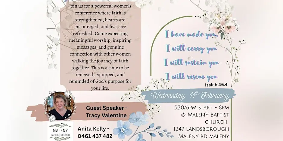 Maleny Baptist is running an event for local women. Sally, Martine and I know the guest speaker well and encourage anyone who's keen to grab a friend or two and head up the mountain 😄